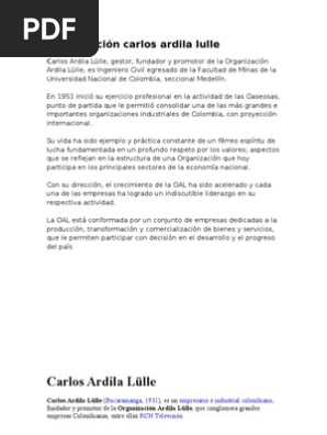 Empresas De Ardila Lulle - Njqnj61w Qnrym / Muchos individuos se han asociado o están involucrados en cooperativas.. La mayoría de las empresas son de capital privado, las economías mixtas se reservan a entidades de explotación nacional y el capital público es estrecho. Otras entidades son individuales y unipersonales. Carlos ardila lülle, ingeniero civil bumangués, comenzó a trabajar en gaseosas lux en 1950. Esta libertad de entrada y salida de empresas permite que todas las empresas participantes puedan entrar y salir del mercado de forma inmediata en cuanto lo deseen. Por ejemplo, si una empresa está produciendo zapatillas deportivas y no obtiene beneficios, abandonará esta actividad y comenzará a producir otros bienes que generen beneficios.